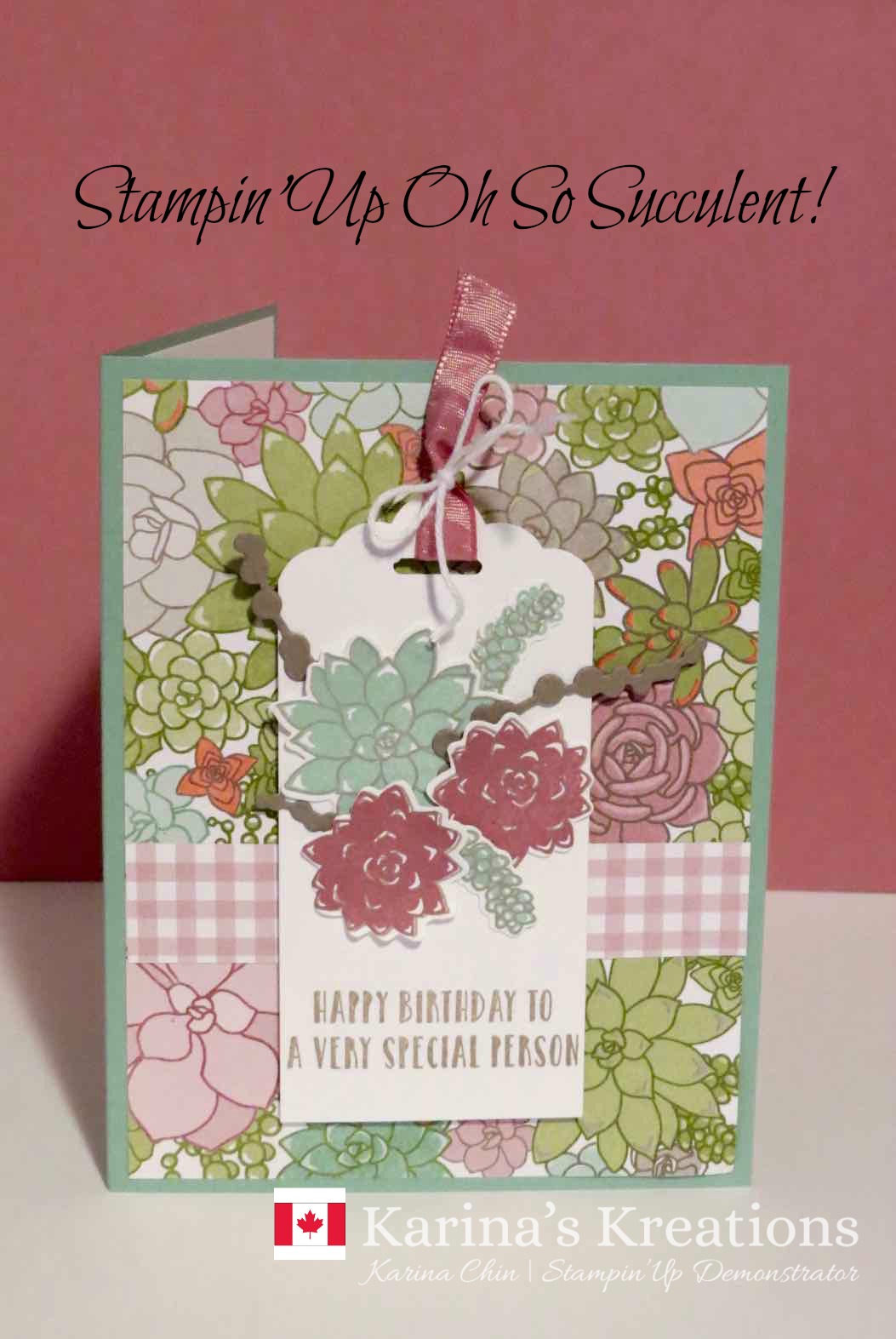 My design uses the Oh So Succulent stamp set and coordinating Succulent Framelit Dies. You can purchase these as a bundle #145184 which gives you a 10% savings. This bundle is $63.00 so you can also choose a free sale-a-bration item.