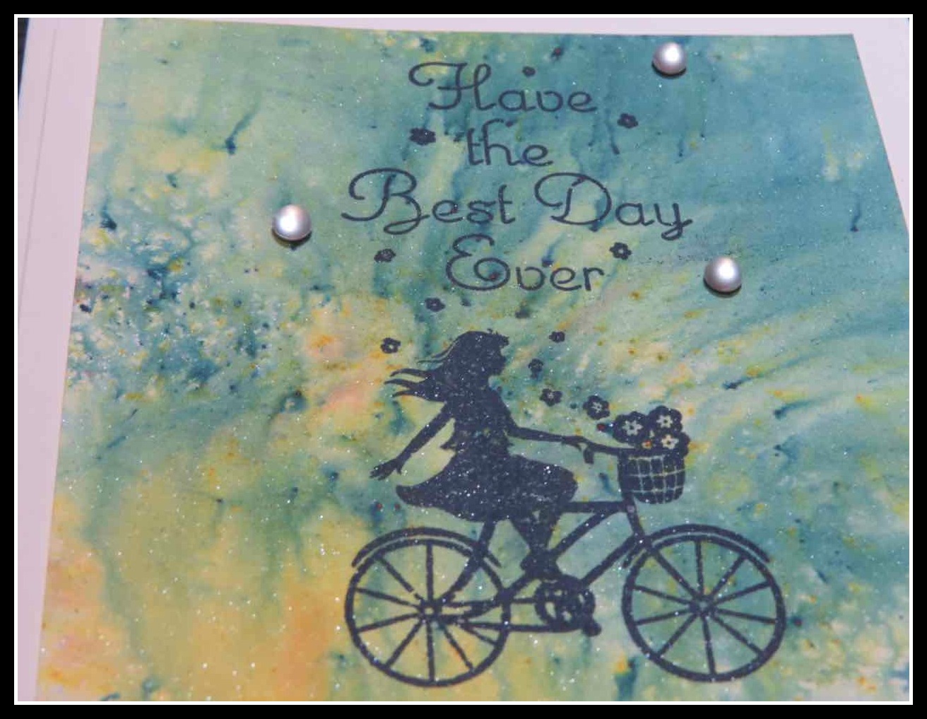 I wanted to make a quick but cute cards using the girl on the bike image.