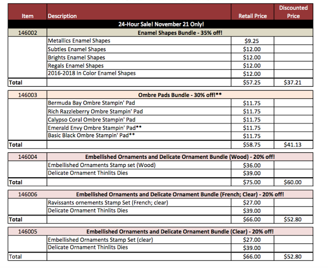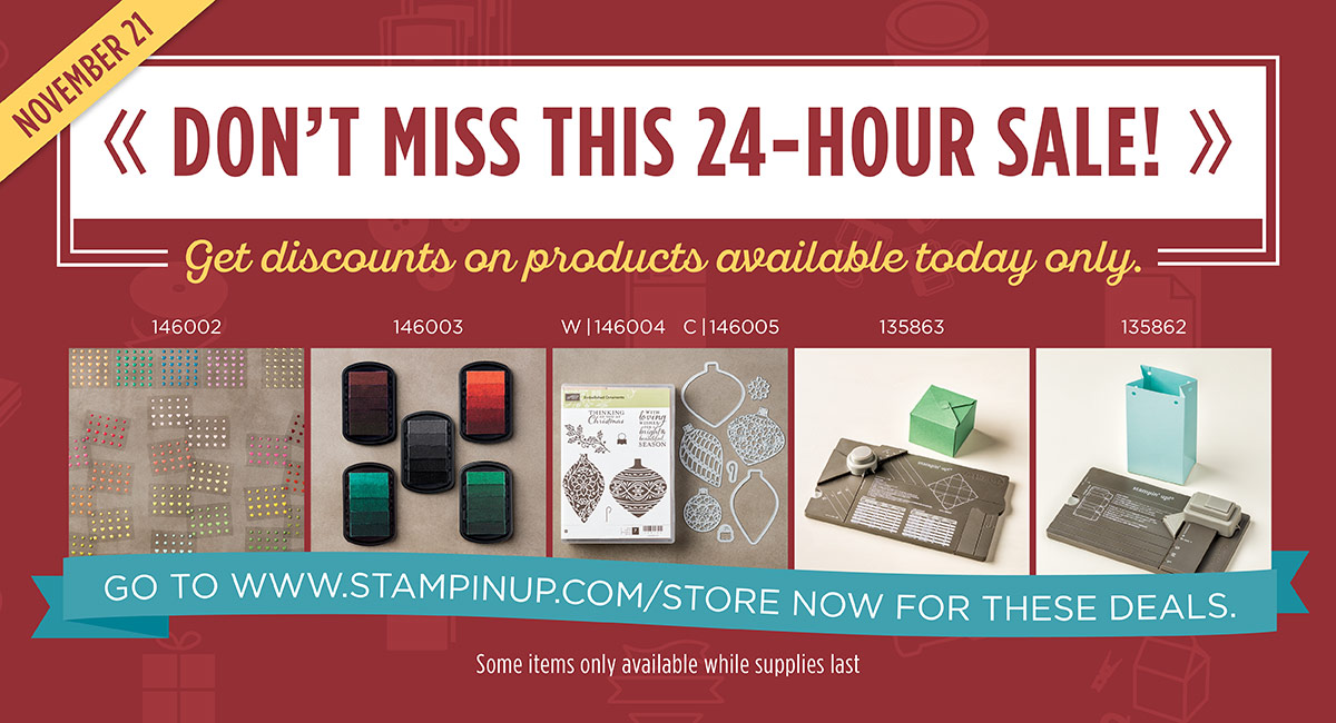 The Stampin’Up online extravaganza sale starts today Nov 21- Nov 28.
