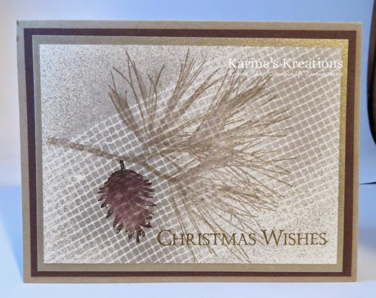 I demonstrated this fun card at the Creative Day Getaway last Saturday using the Ornamental Pine stamp set.