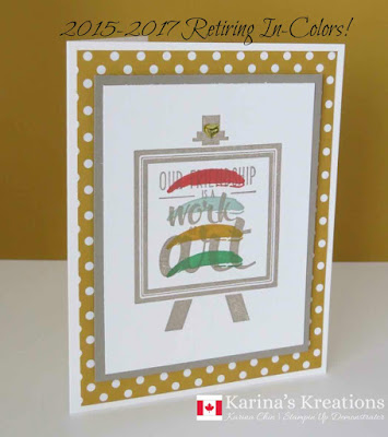 I made this cute card using the Painter’s Palette stamp set #141910, Tip Top Taupe, Watermelon Wonder, Mint Macaron, Delightful Dijon and Cucumber Crush ink.