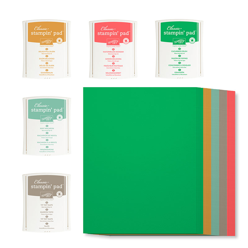 Cucumber Crush #138335 card stock $10.00, #138329 Ink Refill $4.25, #141429 Ribbon $10.75.