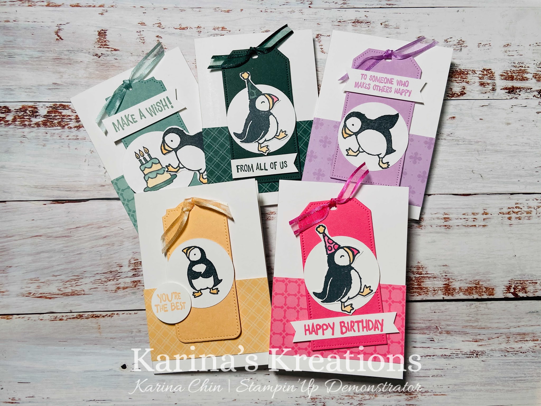 How cute is this stamp set? Don’t you want a make a bunch of these Stampin’Up Party Puffin Cards?