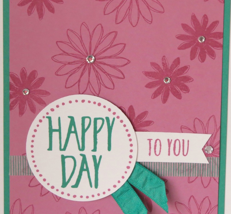 I used the 2″ circle punch to punch out the greeting, added some Playful Palette Designer Washi Tape and Emerald Envy Ribbon.