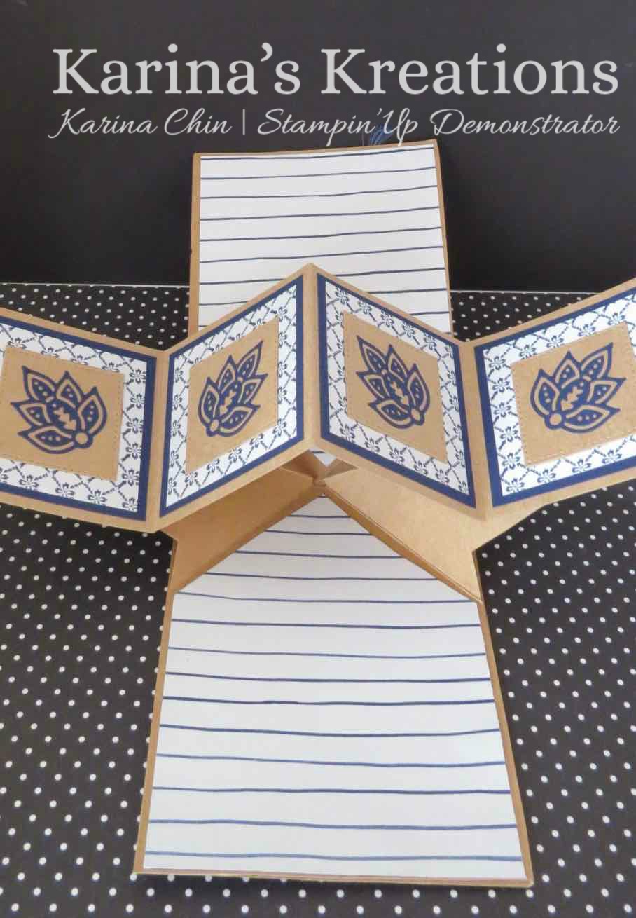 Isn’t it gorgeous!!!! I haven’t tried to make one of these cards yet nut it’s called a pop and twist card. I’m going to start playing with this design so we can make it at my January stamping classes.