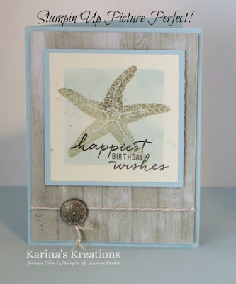 She used the Hardwood stamp set with Smoky Slate ink on Sahara Sand card stock and muted the color with Whisper White craft ink. It’s this gorgeous?