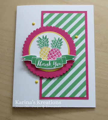 I made a cute summery thank you card with the Pop of Paradise stamp set #141581.