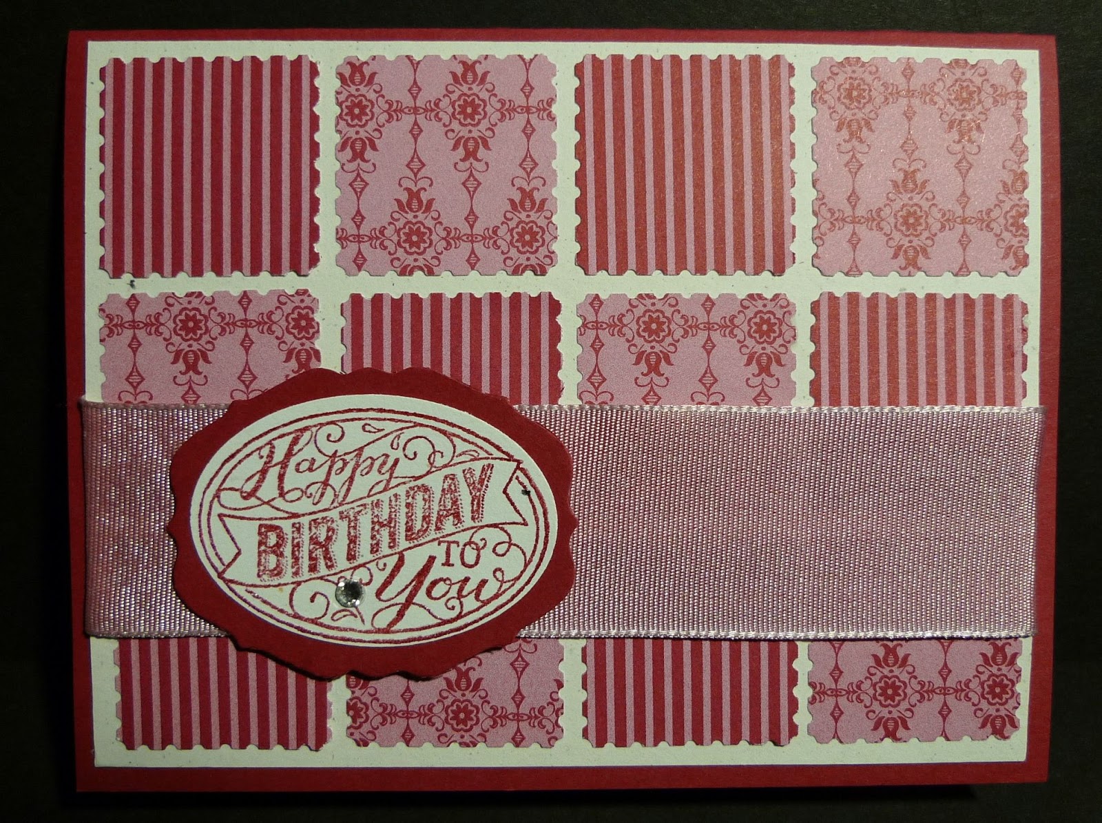 I made this cute card using the Two Toned 1-1/4″ Pink Pirouette/Rose Red Ribbon. Do you like it?