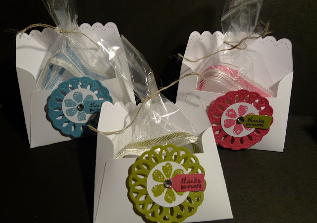 The ribbon is the new 3/8″ Striped Organdy Ribbon. It comes in three pretty colors.