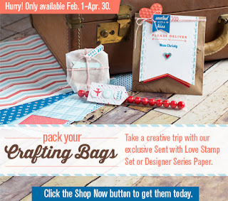 Do you like the sealed with a Kiss image? It’s from the Sent with Love stamp set that’s only available until April 30 or until supplies last! Buy the stamp set & matching Designer Series Paper as a bundle#132851 for only $31.50 and you get some free Calypso Coral Baker’s Twine!