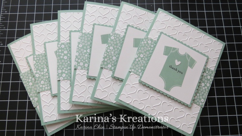 One of the things I love about stamping is creating hand made gifts for friends.  I made 6 baby thank you cards with a matching gift box. I hope she likes it.