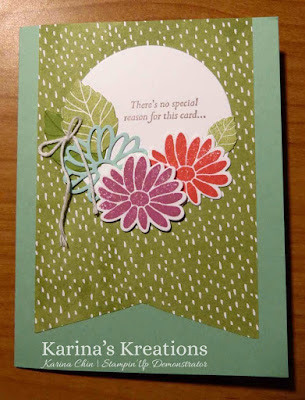 I cased a cute card from the new Occasions catalog using the Special Reason stamp set #142902. This new stamp set has coordinating Stylish stems framelit dies # 142750. I love it when I don’t have to fussy cut my flowers!!!