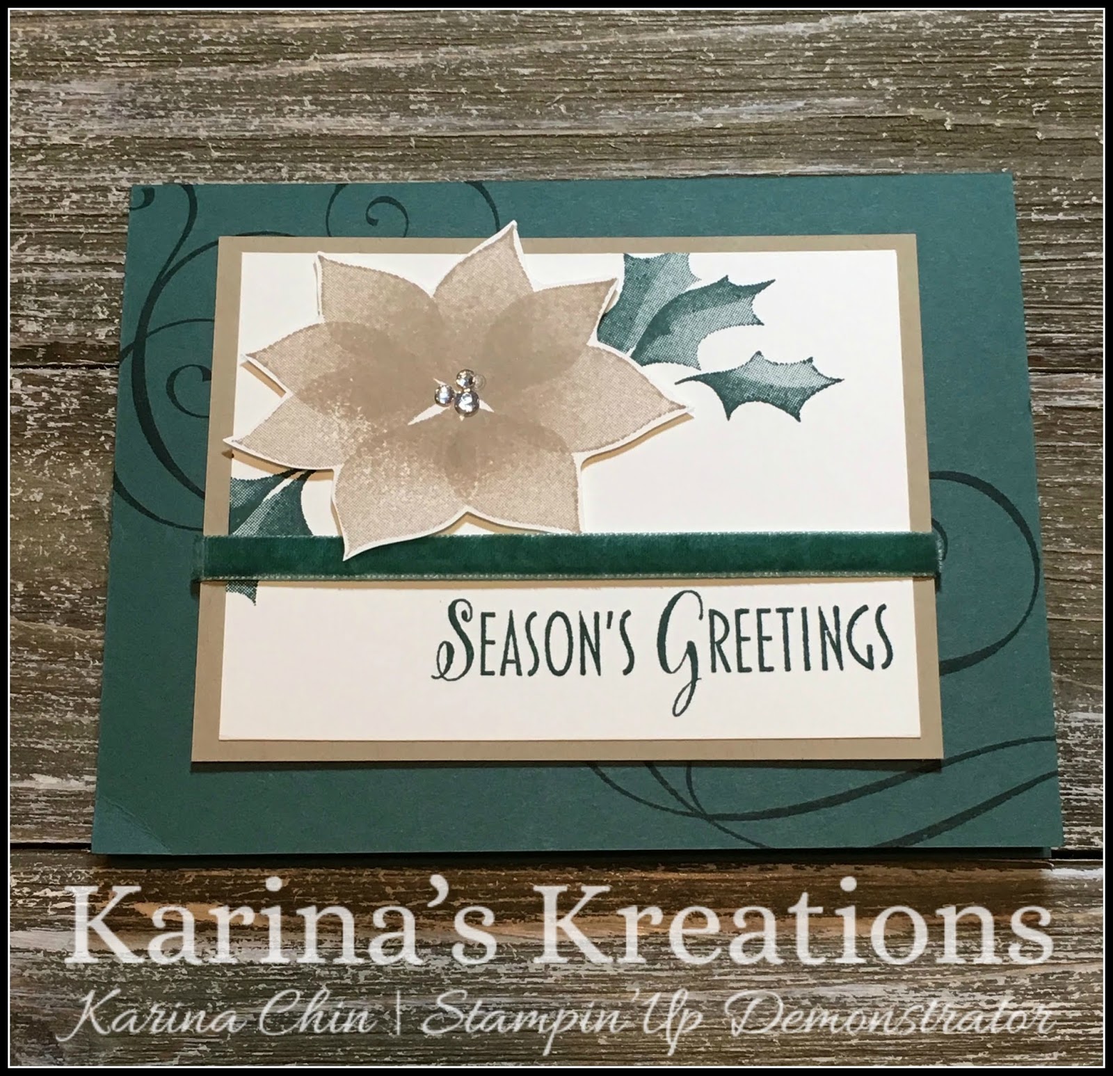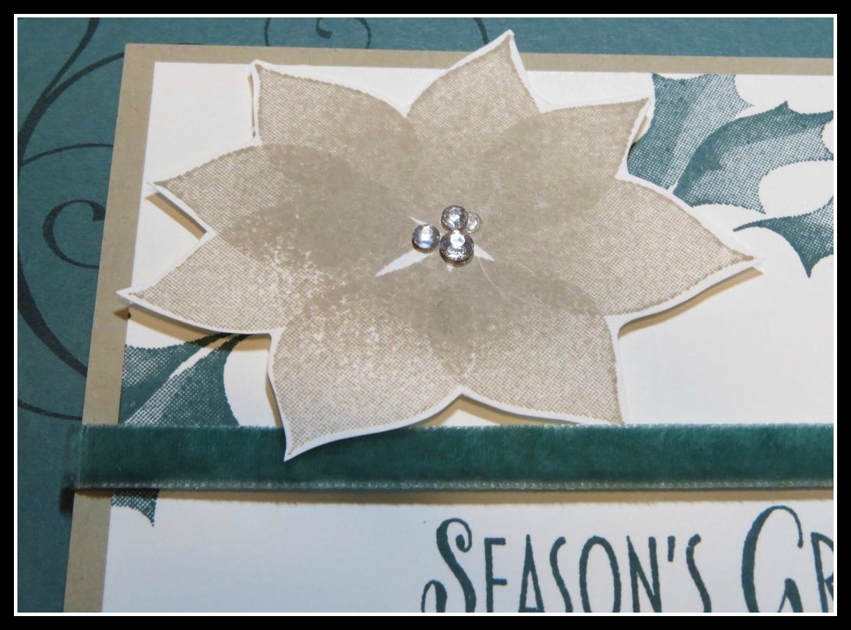 The poinsettia is stamped with Crumb Cake ink and the leaves with Tranquil Tide ink.