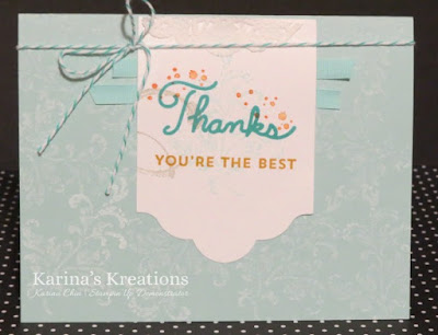 I also used the Timeless Texture stamp set #140517 on this card. I stamped the Pool Party card stock with White craft ink. Isn’t it pretty?
