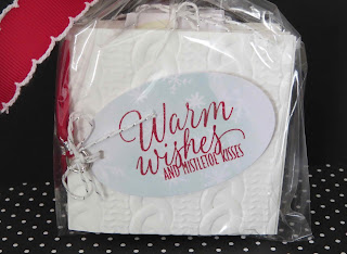 The kit makes 30 tags and 10 of the them will be put onto a card base that was embossed with the cable knit dynamic embossing folder.