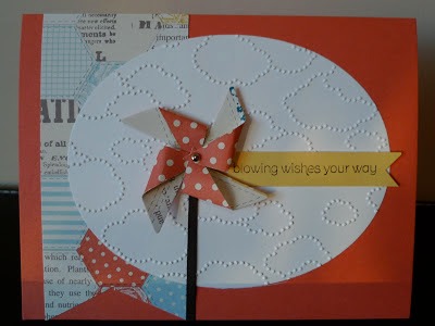 The pinwheel is very easy to make. Cover the Sizzlits die with card stock and run it through the Big Shot Die cut machine.