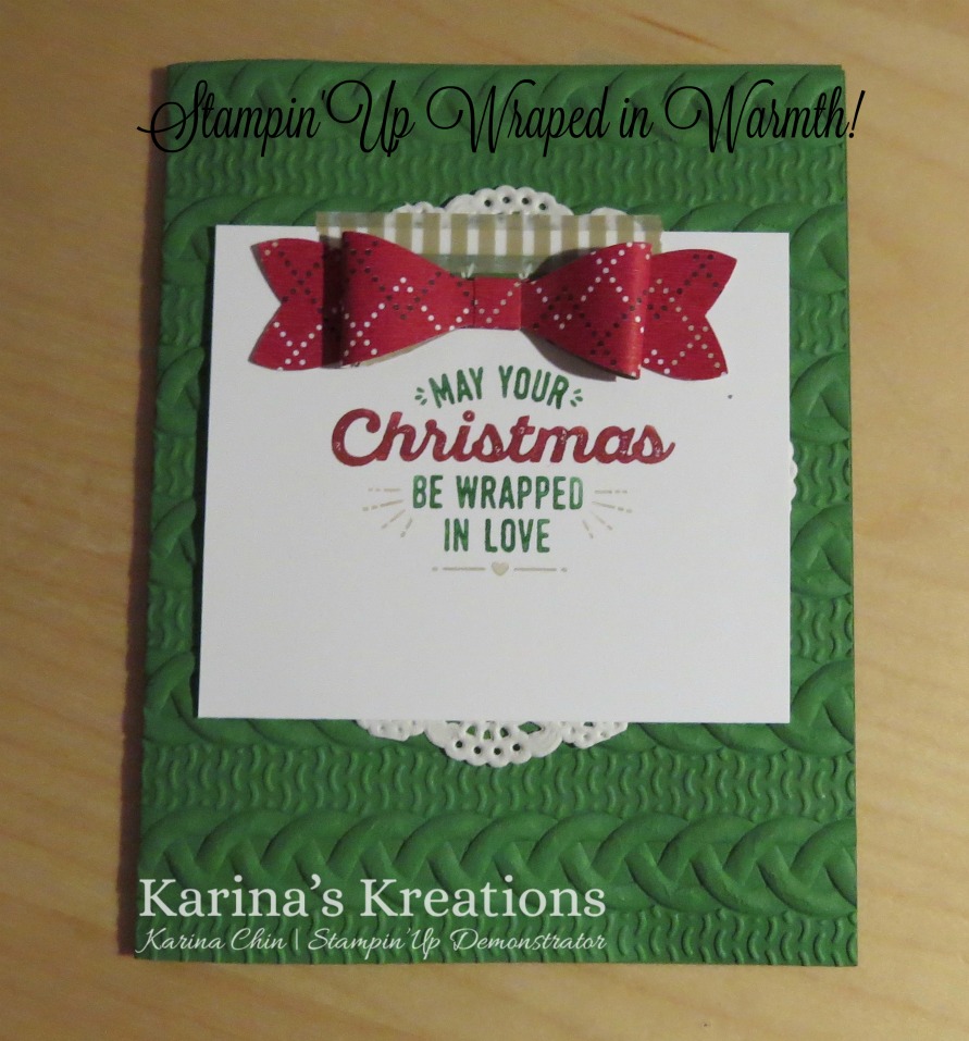 The stamp set is called Wrapped in Warmth and the new embossing folder is the Cable Knit Dynamic Textured Impressions embossing folder. It’s creates a more deeply embossed image than the regular embossing folders.