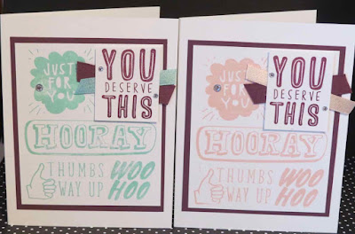 I made these cards for my team members using Fresh Fig, Pool Party or Powder pink ink.