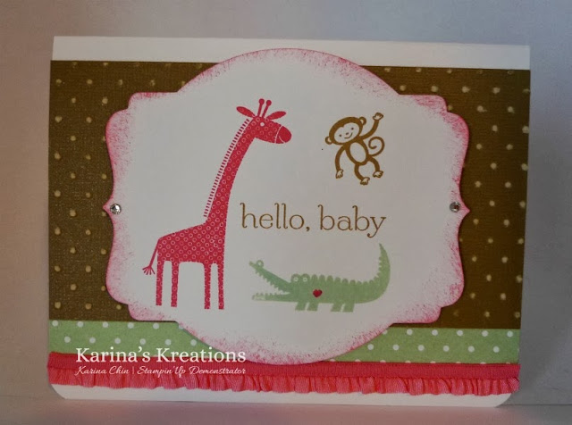 I was going to post another Christmas card today but decided on a baby card instead. I love this cute Zoo Babies stamp set! The images are so happy and makes a perfect gift for the kids in your life.