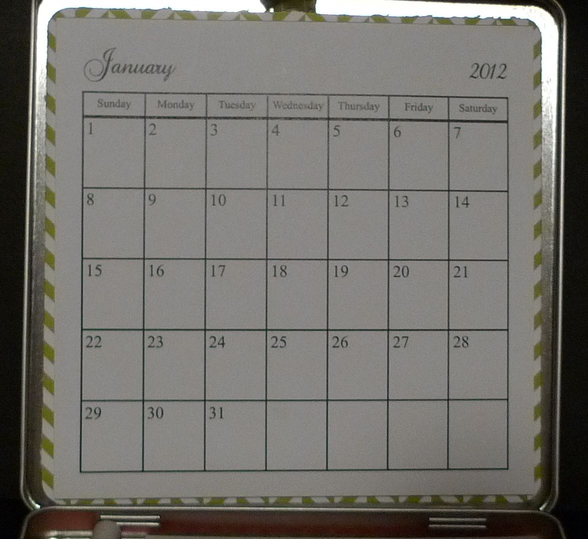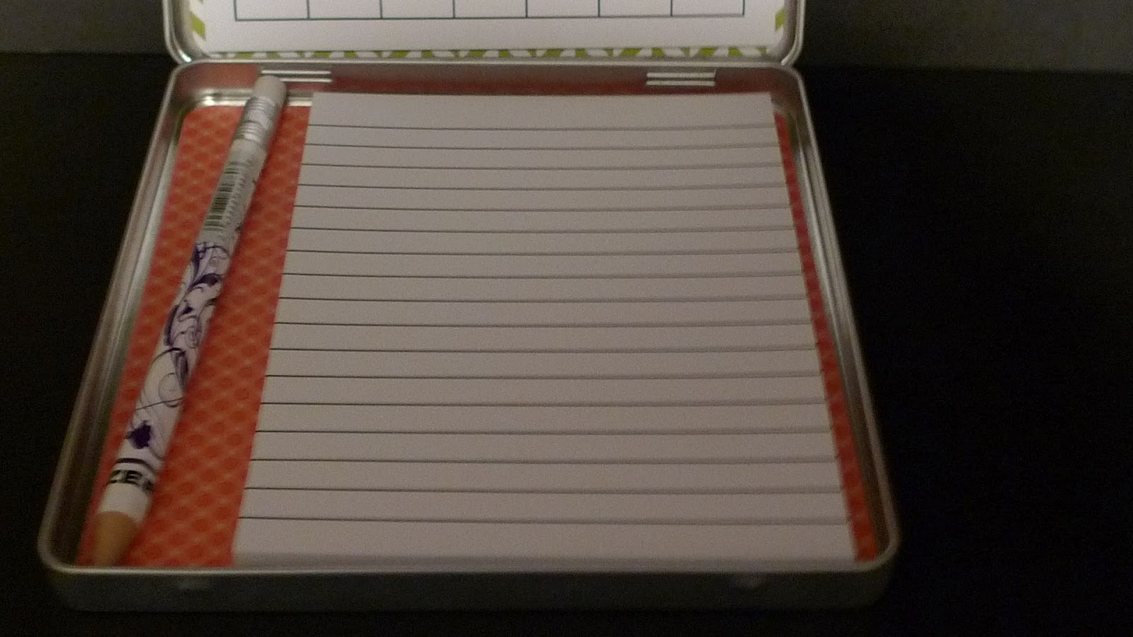 I went to my friend Tricia’s today and made this beautiful project. It’s a calendar and note pad in a cute tin.