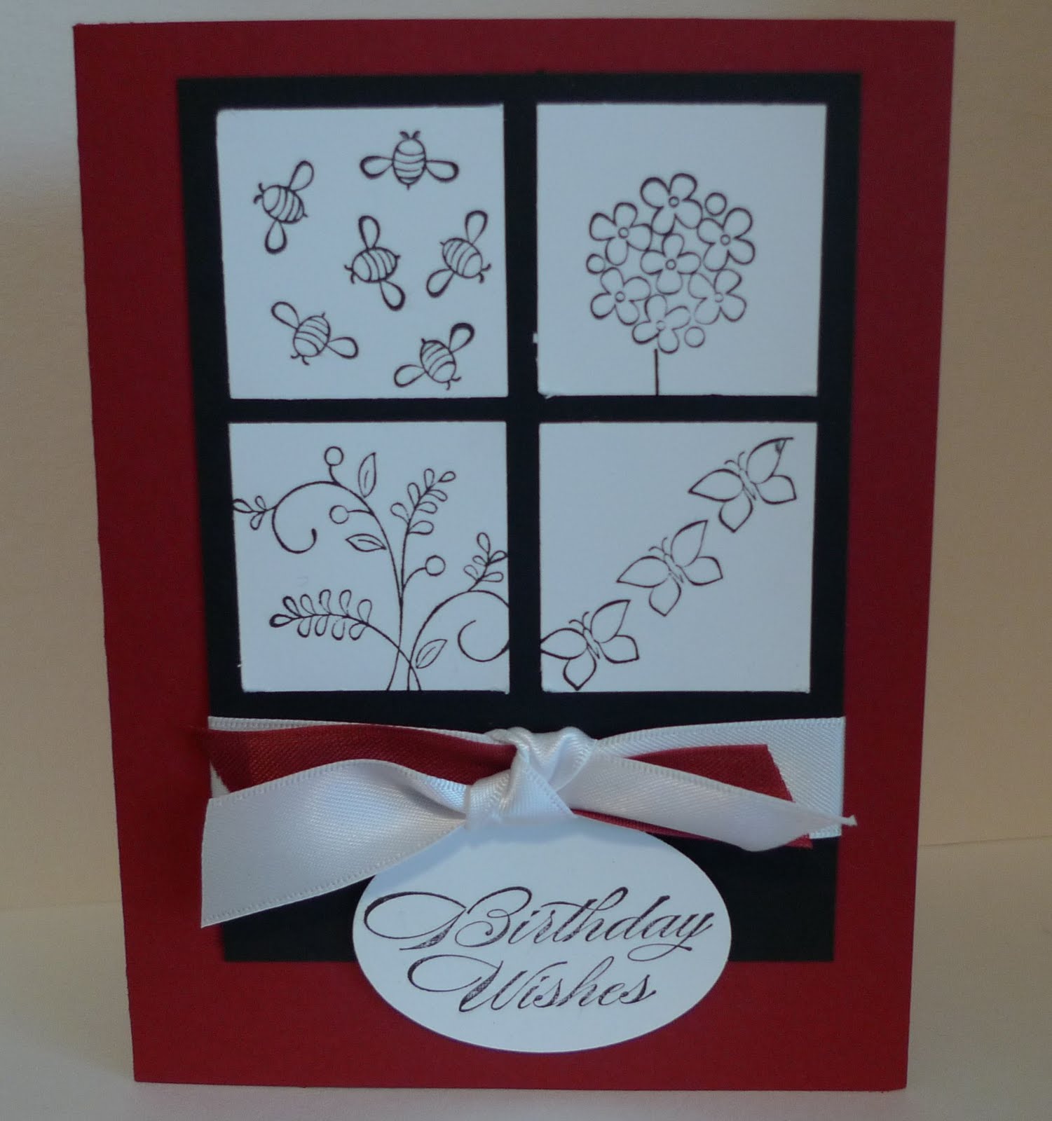 The ribbon is 5/8″ Whisper White Satin Ribbon and Cherry Cobbler Seam Binding.