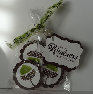 Hi Stamping Friends, I needed some treats for a friend so I made them this 3D item!!! I took three peanut butter cups and covered each side with Chocolate Chip card stock punched out