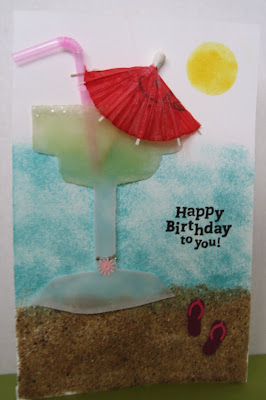 Hi Everyone, This is a beautiful card my friend and downline Carol made me for my birthday. She used Crystal Effects to attach the sand to the card. Isn’t it gorgeous? I love how