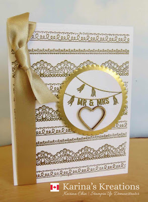 1. Wow. This Delicate Details set makes great Wedding cards! Really like what you've done Karina! Have a terrific end to your Sale-A-Bration and God Bless, Cynthia <><