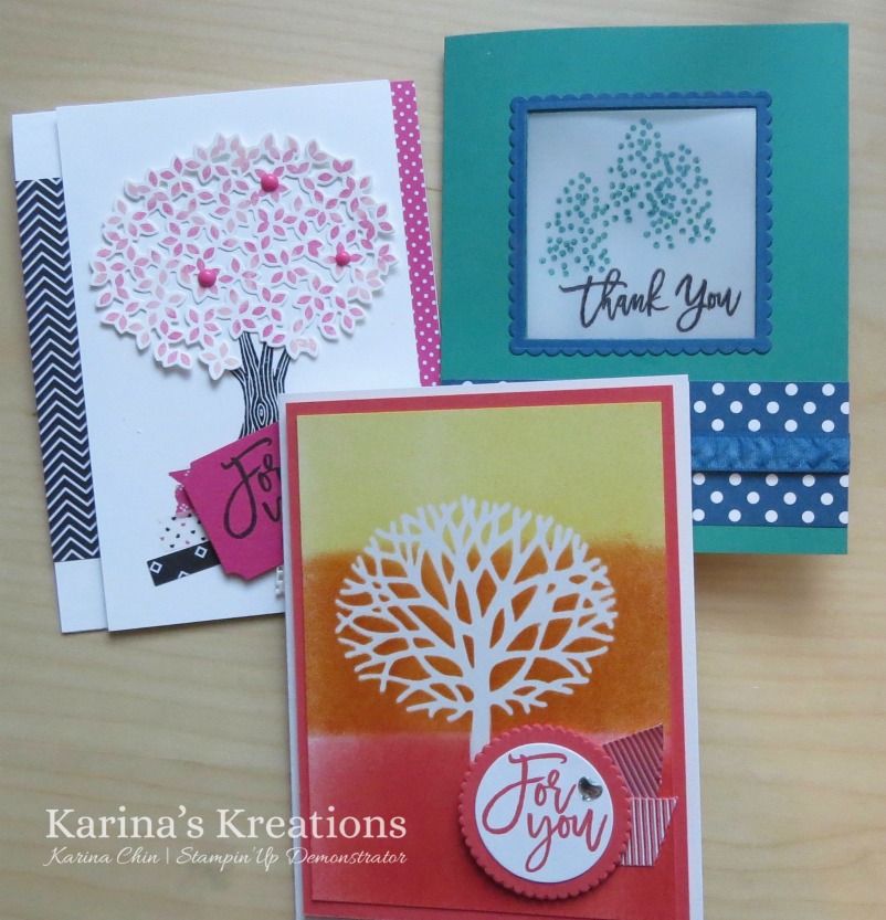 These are the cards for my stamp set of the month using the Thoughtful Branches stamp set and matching framelits.