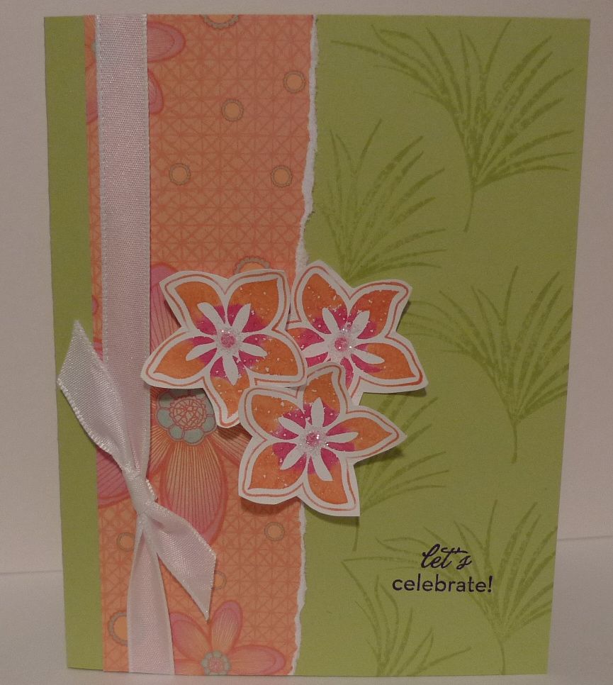 Accessories: Only Orange & Pixie Pink Stampin’ Write Markers, Whisper White Taffeta Ribbon, 2 Way Glue Pen, Dazzling Diamonds Glitter