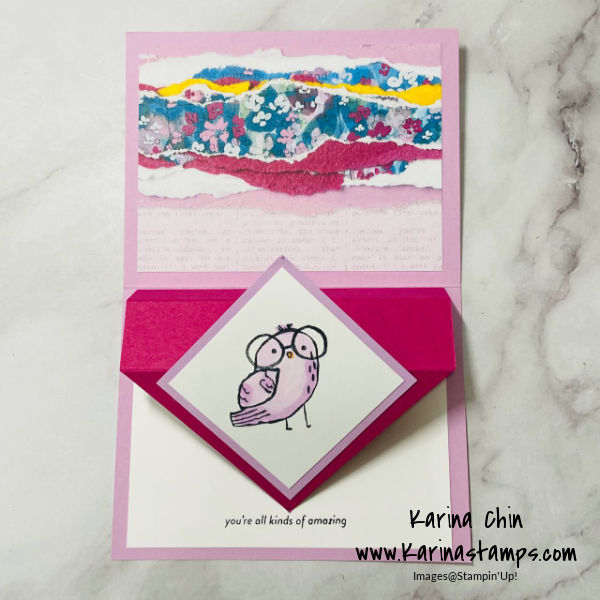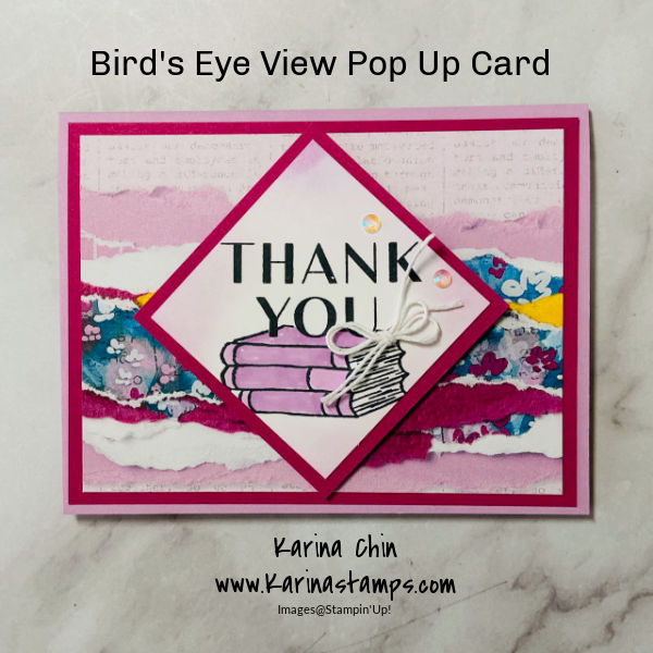 Today I have a really fun card design to share with you. It’s a pop up card featuring the Bird’s Eye View stamp set. This card design is easy to make and will help you expand your card making skills.