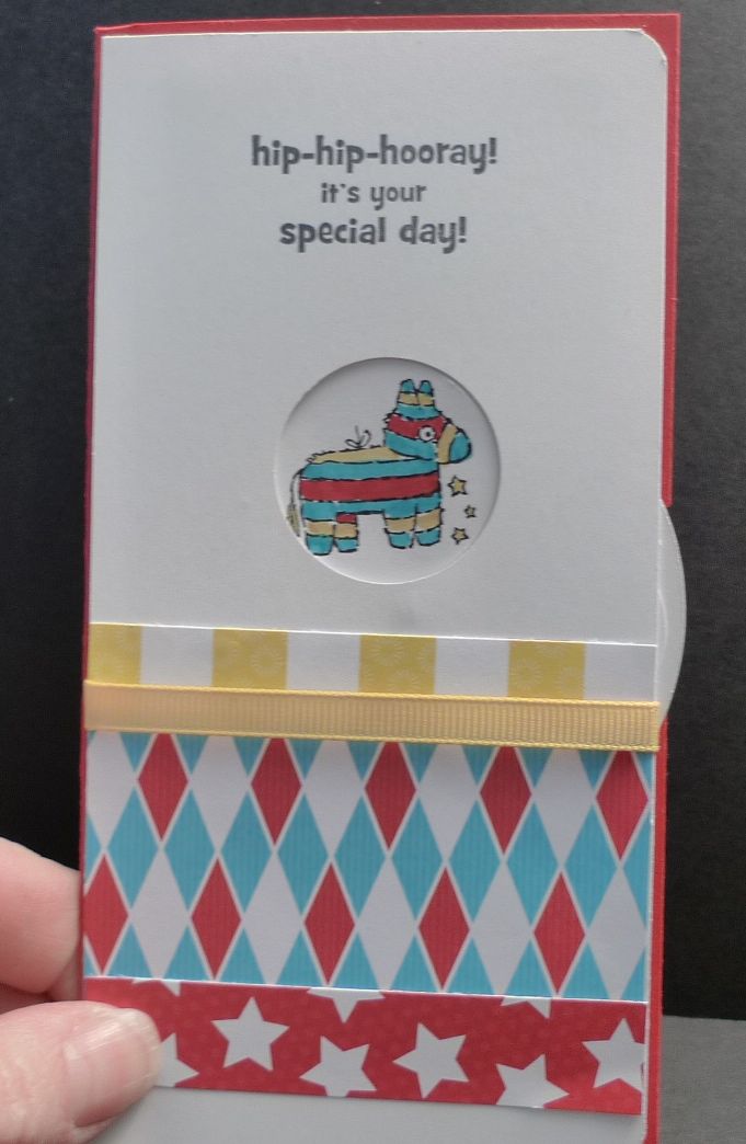 I made a view master card with the Packed for Birthday stamp set. It’s only $11.95 in the Occasions Mini Catalog.