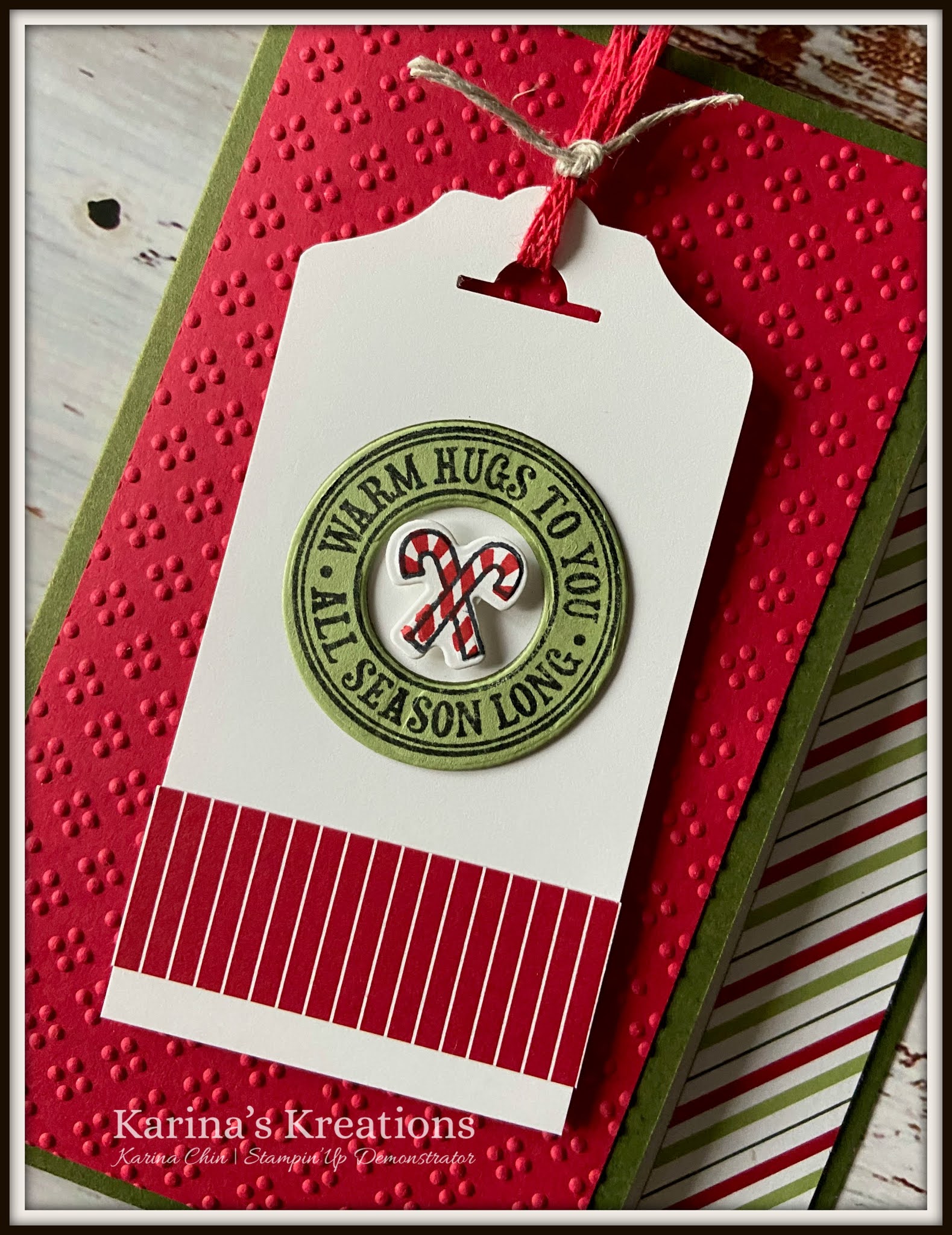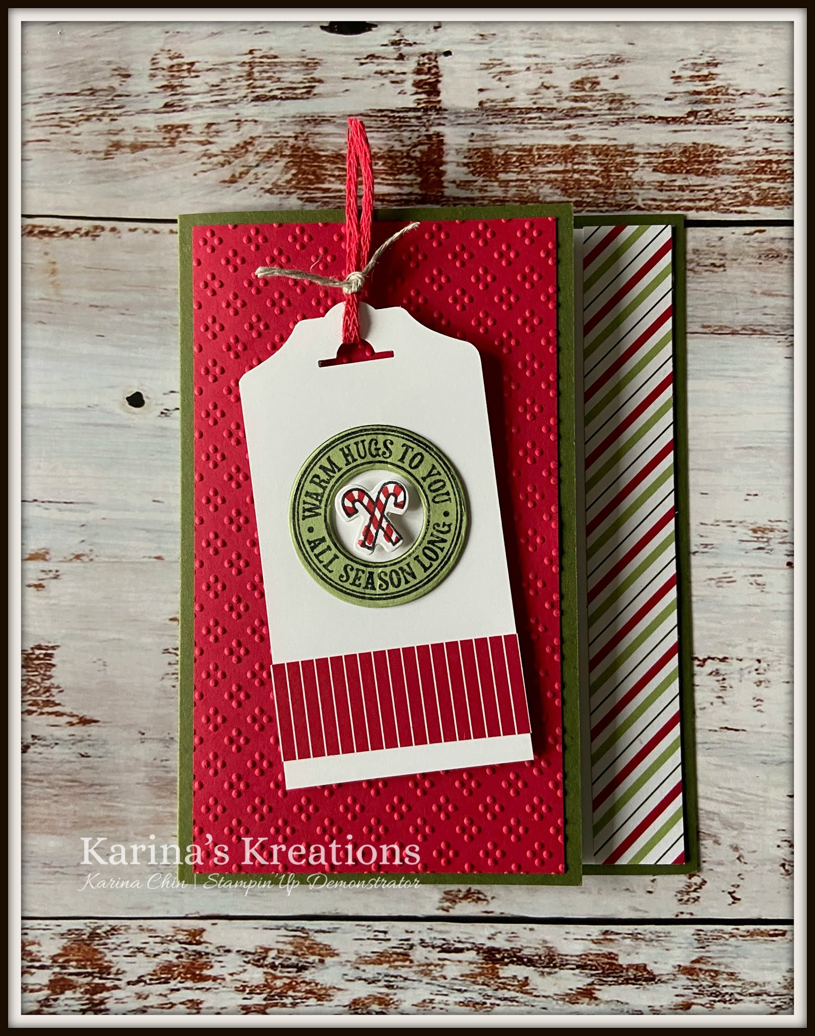I love the colorful Designer Series Paper that was added along the side of the card. Do you notice the new tag topper punch? It’s the Fancy Tag Topper Punch from the annual catalog.