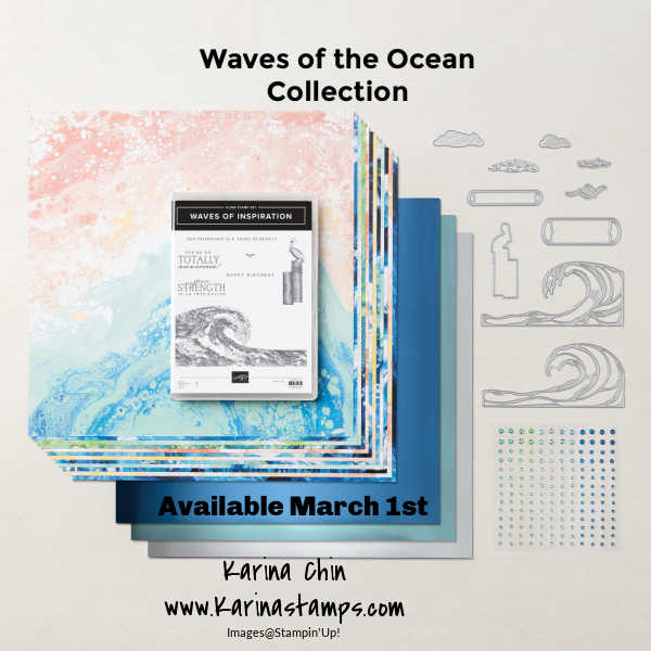 Product ListTo order card making supplies please go to https://karinachin.stampinup.net/ if you live in Canada. The hostess code is 6VRJDD7S. I would love to help you with your order. Orders over $100 will receive a package of Rhinestone Waves Basic Jewels. Offer good until March 18th.