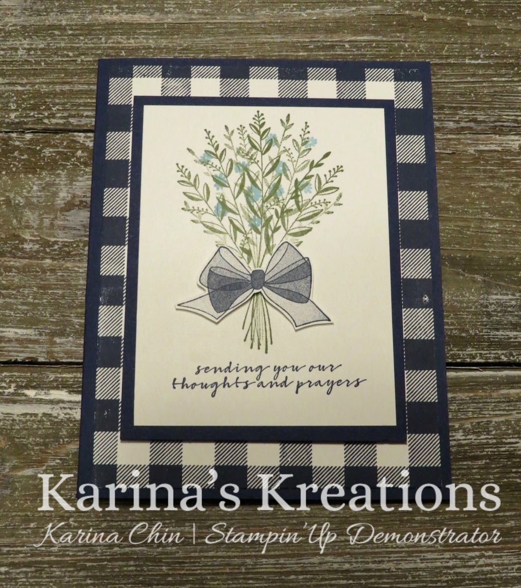 I used the Buffalo Check stamp set as the background for my. It looks so striking with Night of Navy ink on Whisper White card stock.